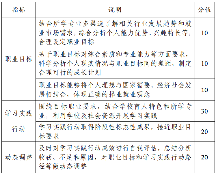 面向学院本科二、三年级学生。重在考察学生树立生涯发展理念并合理设定职业目标,围绕实现目标持续行动并不断调整的成长过程,通过学习实践提升综合素质和专业能力,体现正确的择业就业观念。
