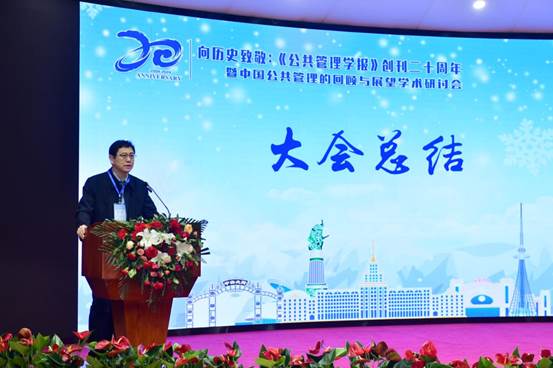 (深圳)人文与社科学院院长孙涛教授作大会总结。他指出,《公共管理学报》在引领我国公共管理研究的理论、方法和学科建设上具有前瞻性,学报与我国公共管理学科形成了同频共振和双向赋能的关系。孙涛教授祝贺《公共管理学报》创刊20周年,并感谢全国公共管理学界同仁参与此次研讨会,期待未来《公共管理学报》能进一步推进公共管理学科的交流互鉴和学术繁荣。