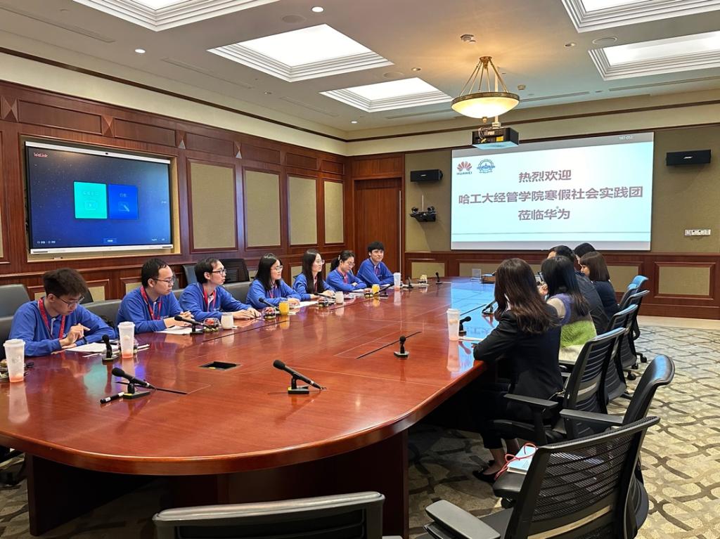 随后,实践团一行前往华为并与该企业校友进行了交流,华为校友们介绍了企业发展现状及其战略布局,展示了华为在技术封锁环境下各项业务领域的先进技术和优秀产品。同学们在参观和访谈中深受鼓舞,了解到只有夯实自身本领、提高综合素质才能更好地应对眼下严峻的就业形势。