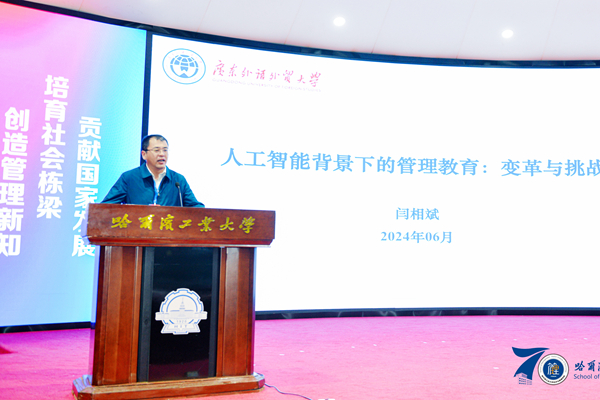 原院长于渤主持。孙东生以“人工智能与教育变革”为题,介绍了人工智能对教育的冲击与挑战,他指出,针对重大变革,教育系统应围绕“基于AI的教育生态再造、对传统学科进行赋能重塑、积极推进‘AI for Education’”等方面主动求变、积极应变;彭博以“AI产业发展”为题,介绍了人工智能的发展趋势、通用人工智能三大里程碑以及AI对人才、能力和企业治理架构带来的巨大变化,他表示,未来经验和知识的作用将大大下降,创造力将成为人才的核心能力;闫相斌以“人工智能背景下的管理教育:变革与挑战”为题,阐述了人工智能时代的社会变革以及传统管理教育面临的困境与挑战,他指出,未来应借助AI技术,在推动管理学科变革、培育管理教育新生态、培养创新型管理人才等方面重点发力,更好服务国家战略和发展大局。