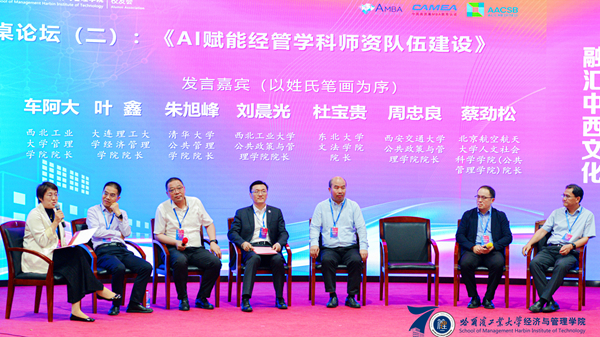 院长谢恩参加了主题为“AI赋能经管学科人才培养”的圆桌论坛研讨;西北工业大学管理学院院长车阿大,大连理工大学经济管理学院院长叶鑫,清华大学公共管理学院院长朱旭峰,西北工业大学公共政策与管理学院院长刘晨光,天津大学管理与经济学部主任杜慧滨,西安交通大学公共政策与管理学院院长周忠良,北京航空航天大学人文社会科学学院(公共管理学院)院长蔡劲松参加了主题为“AI赋能经管学科师资队伍建设”的圆桌论坛研讨。里番