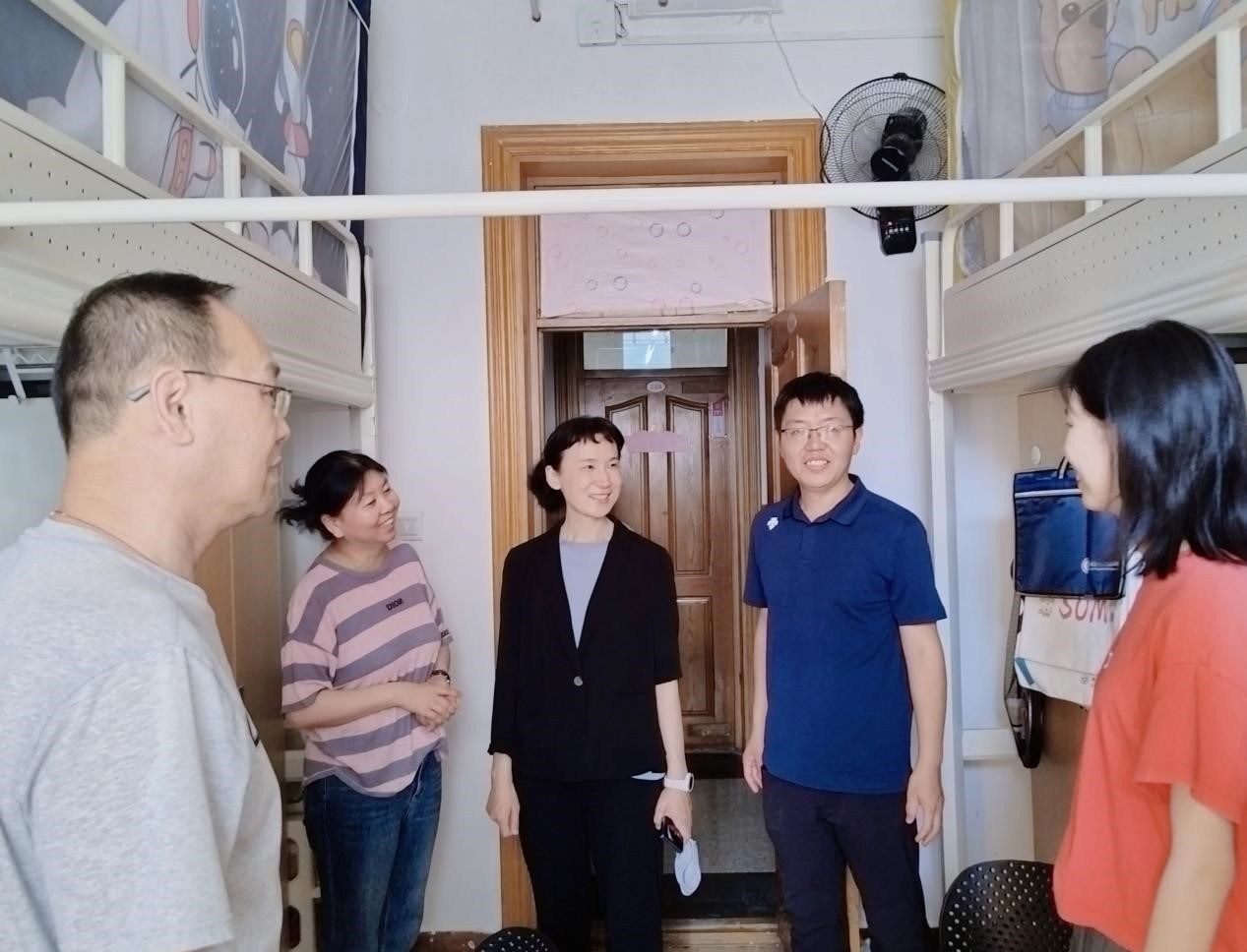 寝室走访过程中,孟炎与学生进行亲切交谈,关切询问同学们搬迁是否顺利、住宿是否适应,全面了解学生在日常生活、学习科研方面的需求,鼓励同学们勤奋学习、全面发展。徐建慧叮嘱同学们要保持寝室整洁,提升防盗及用水用电安全意识,建设好寝室这个共同的“家”。学院领导还询问了解了学生家长对学院人才培养的意见建议,并就学生家长关心关切的问题给予积极反馈。