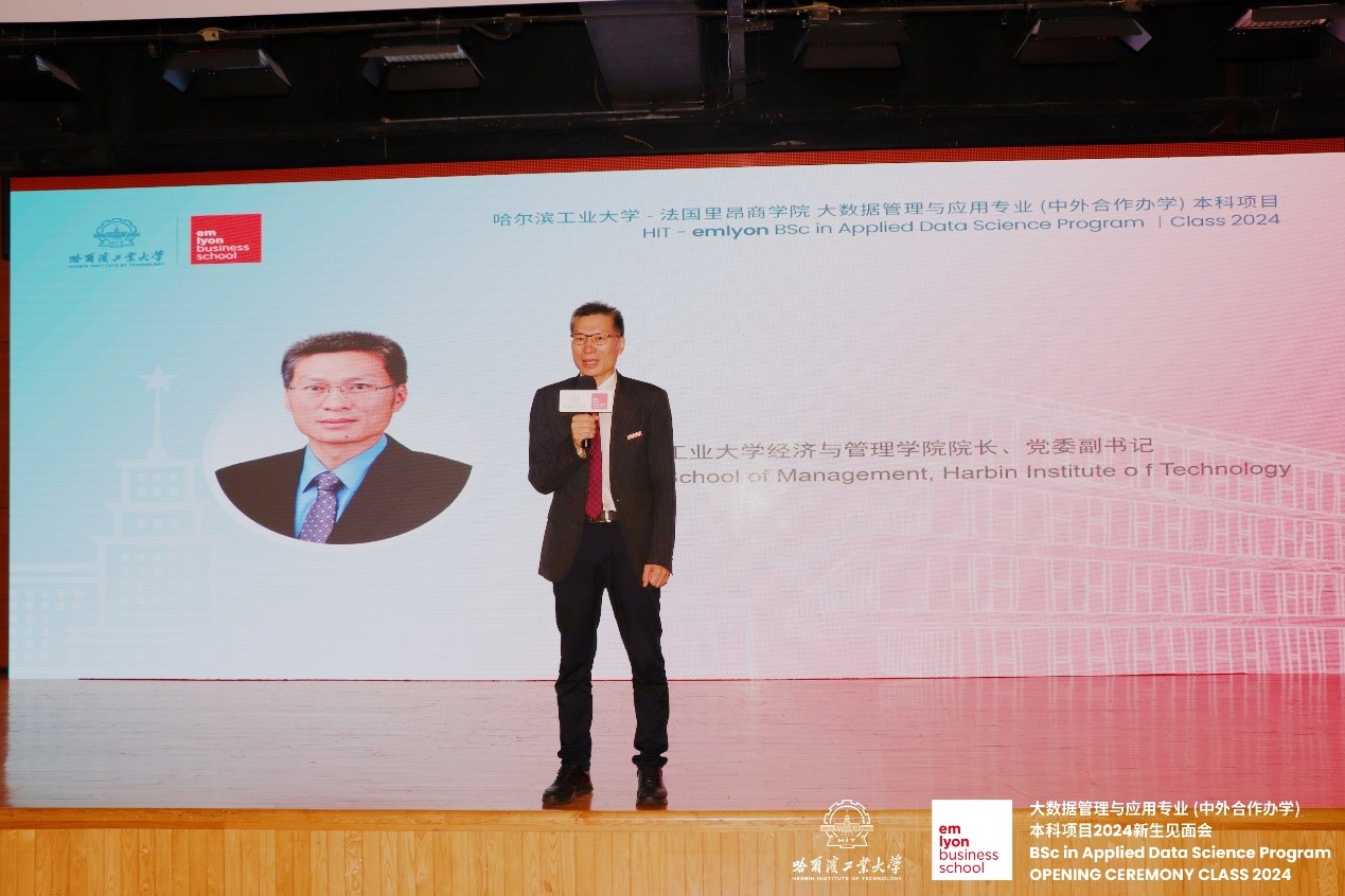 对外合作办公室主任高非易,法国里昂商学院亚洲本硕项目副主任、亚洲校区国际合作主任尼古拉·兹乌拉克先后致辞。首批大数据管理与应用专业本科教育项目学生杨阳作为学生代表发言,分享了自己入学以来的成长与蜕变。