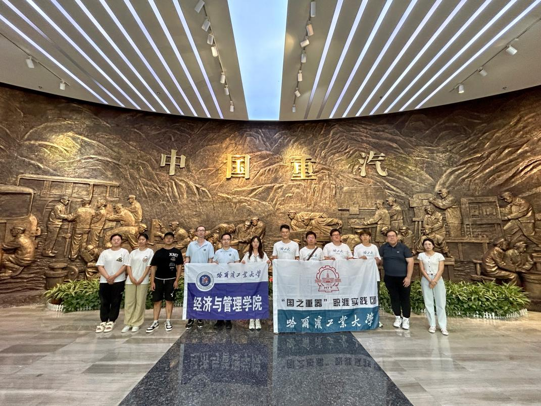 8月14日下午,实践团前往中国重型汽车集团。在历史陈列馆,讲解员带领实践团成员回顾了中国重汽的发展历程,成员们深刻感受到中国工业跨越式发展的艰辛与成就。随后,中国重汽的校招主管为同学们详细介绍了公司的工作环境、职业发展通道及招聘标准,着重强调了公司为新入职员工提供的良好发展支持和灵活的岗位选择机制。