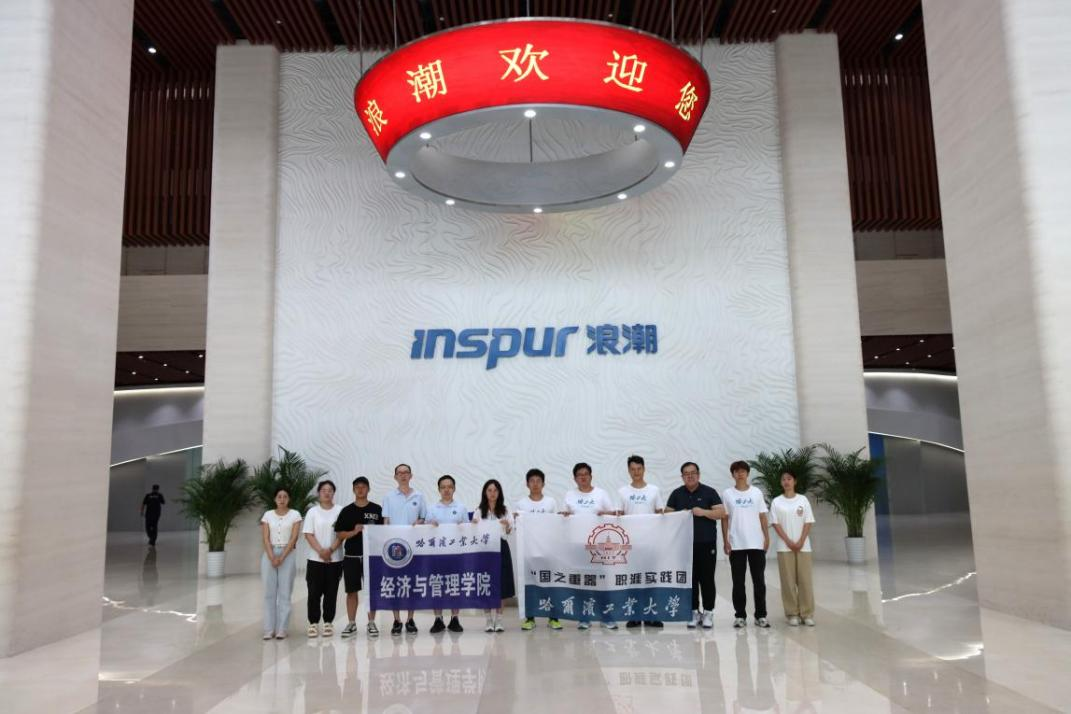 8月14日上午,实践团来到浪潮集团。作为中国本土顶尖的大型IT企业之一,浪潮集团在云计算、大数据和工业智能等领域具有显著技术优势,通过参观浪潮展馆,实践团成员直观感受了企业的技术创新实力。随后,实践团与企业人力主管就招聘政策、岗位设置、员工培训及企业未来发展战略进行了深入交流。最后,就职于浪潮集团的哈工大校友张兴现身说法,就个人职业成长经历为同学们提出了宝贵建议。