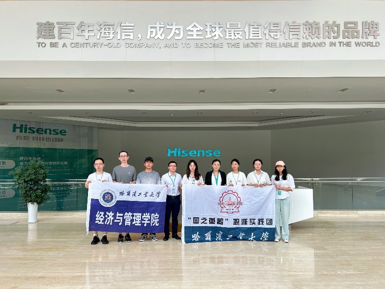 8月15日下午,实践团参观了海信集团。实践团通过参观企业展厅,全面了解了海信集团在电子、家电领域的技术实力及其广泛的产品线。海信对技术创新的执着追求与对社会责任的积极承担,给实践团留下了深刻印象。座谈会上,关于人才培养与招聘政策的深入探讨,以及哈工大校友在海信的成功案例分享,进一步坚定了学生们对未来职业道路的信心。
