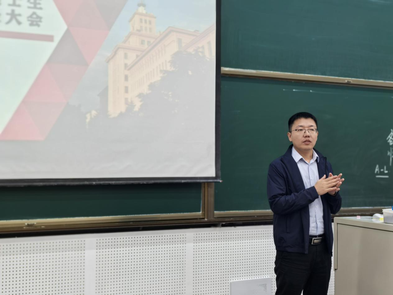会上,敢干老师强调了各类重要信息的获取方式与反馈渠道,并对同学们关注的发展党员和奖学金评定相关事务进行了详细说明。针对毕业年级即将迎来的求职就业季,敢干老师对求职就业全流程进行了详细阐述。此外,他对请销假管理等校园规章制度进行了全面细致地解读。随后,徐建慧书记对同学们的学习和生活表示关心,并结合当前时代背景与就业前景,通过生动的案例与详实的数据,深刻剖析了研究生发展过程中的机遇和挑战。
