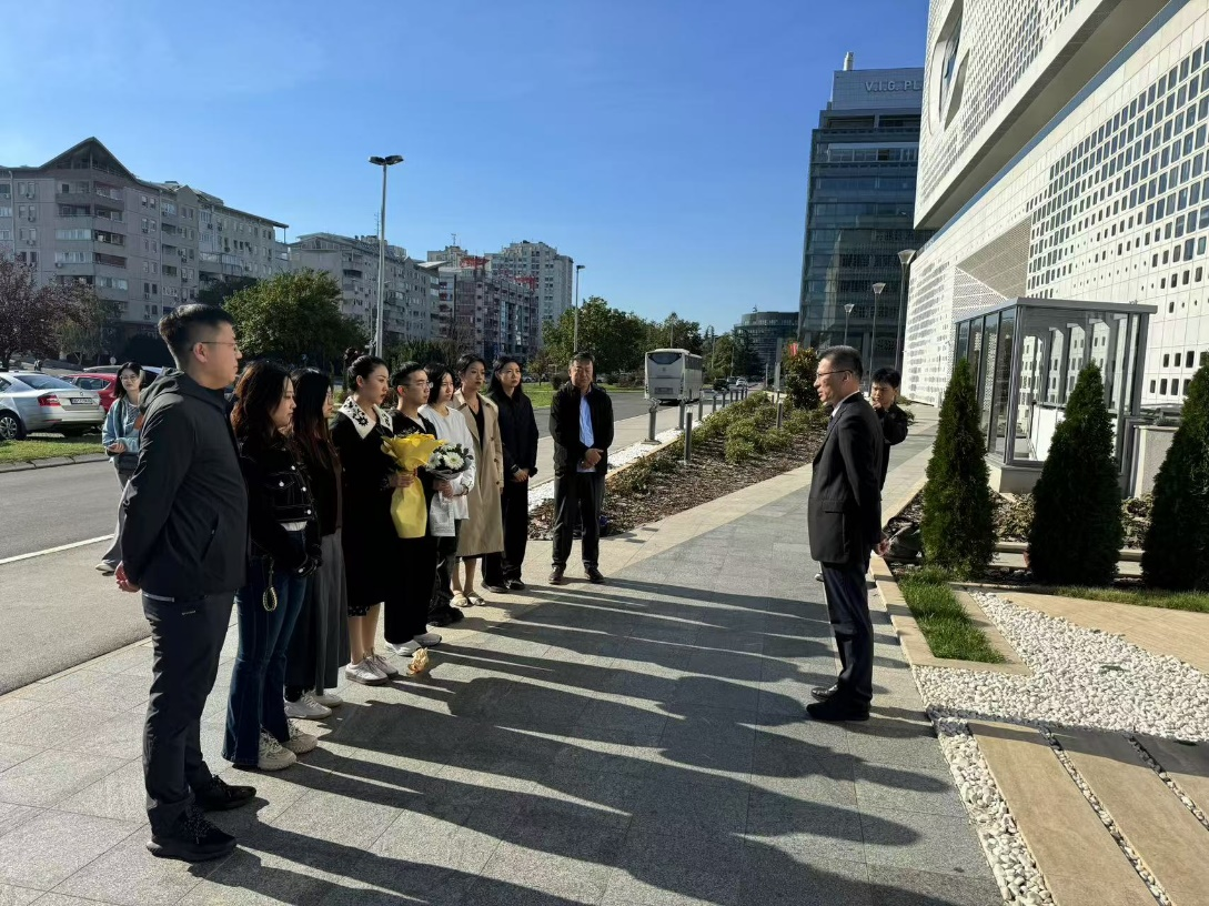 出访团队首先来到了位于塞尔维亚贝尔格莱德的中国驻南联盟被炸使馆旧址,凭吊在使馆被炸事件中英勇牺牲的邵云环、许杏虎和朱颖3位烈士。在纪念牌前,王健为全体师生上了一堂生动的思政课,勉励大家铭记历史,奋发图强。随后,出访团队前往塞尔维亚“一带一路”研究所进行座谈,就“一带一路”倡议下的科技创新展开了深入交流。团队还前往塞尔维亚诺维萨德大学,与该校的研究团队就青年人才培养和科技创新等议题进行了广泛探讨。