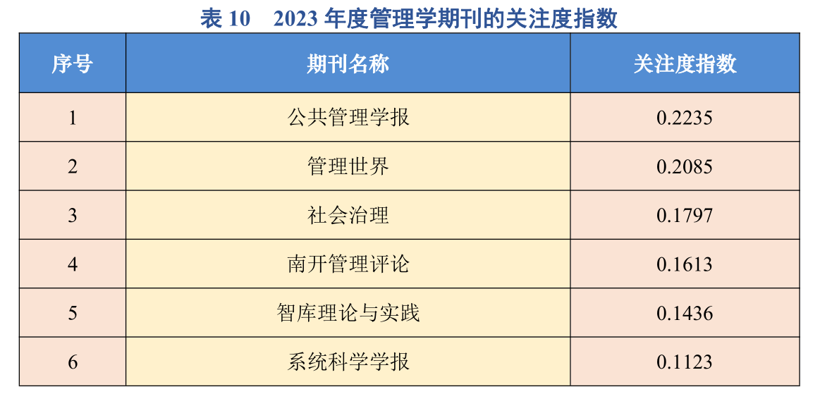 自2020年起,《公共管理学报》连续入选国家哲学社会科学文献中心最受欢迎期刊,近两年蝉联管理学期刊关注度首位,这一成绩是我国公共管理学术共同体集体智慧的结晶,更是我国公共管理学科的共同荣誉。