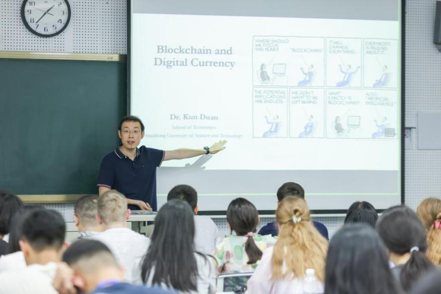 副教授黄莹莹主持,华中科技大学段堃教授带来题为“ Introduction of Blockchain and Digital Currency”的精彩讲座。段堃教授结合数字资产规模、去中心化金融、分布式记账技术和区块链等方面典型案例,提出了传统金融服务的机遇。