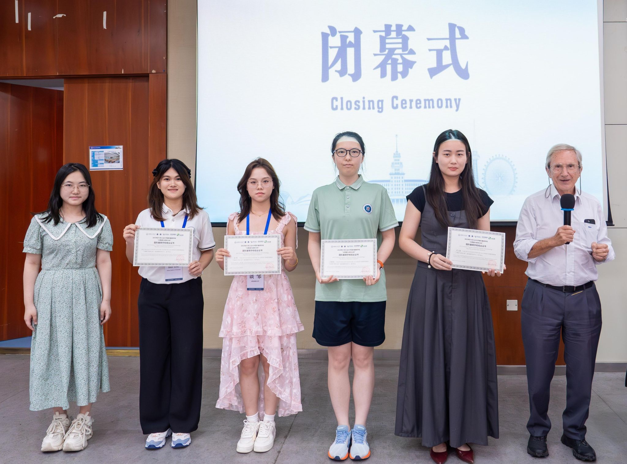 Doug Vogel教授向各班级代表颁发结业证书。最后,全体师生合影留念,第十一届"大数据与商务分析"国际暑期学校正式闭幕。