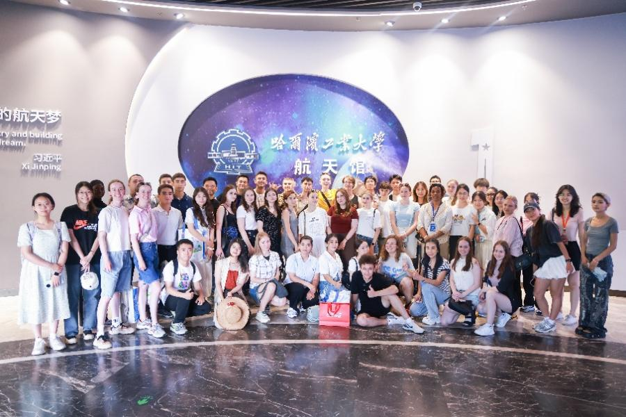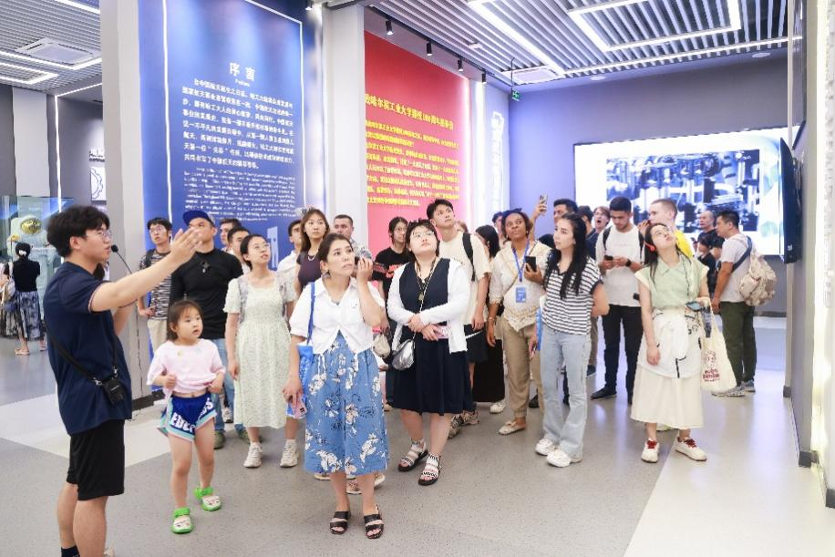 下午,组织学员参观哈工大航天馆。在讲解员的引导下,学员们近距离观摩了“长征火箭”“神舟飞船”“东方红一号”等模型,深入了解哈工大在国家重大航天任务中的关键技术贡献。互动体验区的模拟操作环节,让学员们直观感受到航天工程的系统复杂性与技术挑战,加深了中外学生在工程、技术与文化层面的交流与理解。