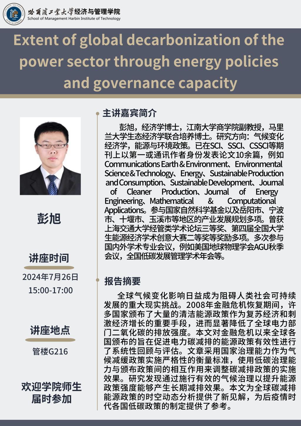 报告题目:Extent of global decarbonization of the power sector through energy policies and governance capacity