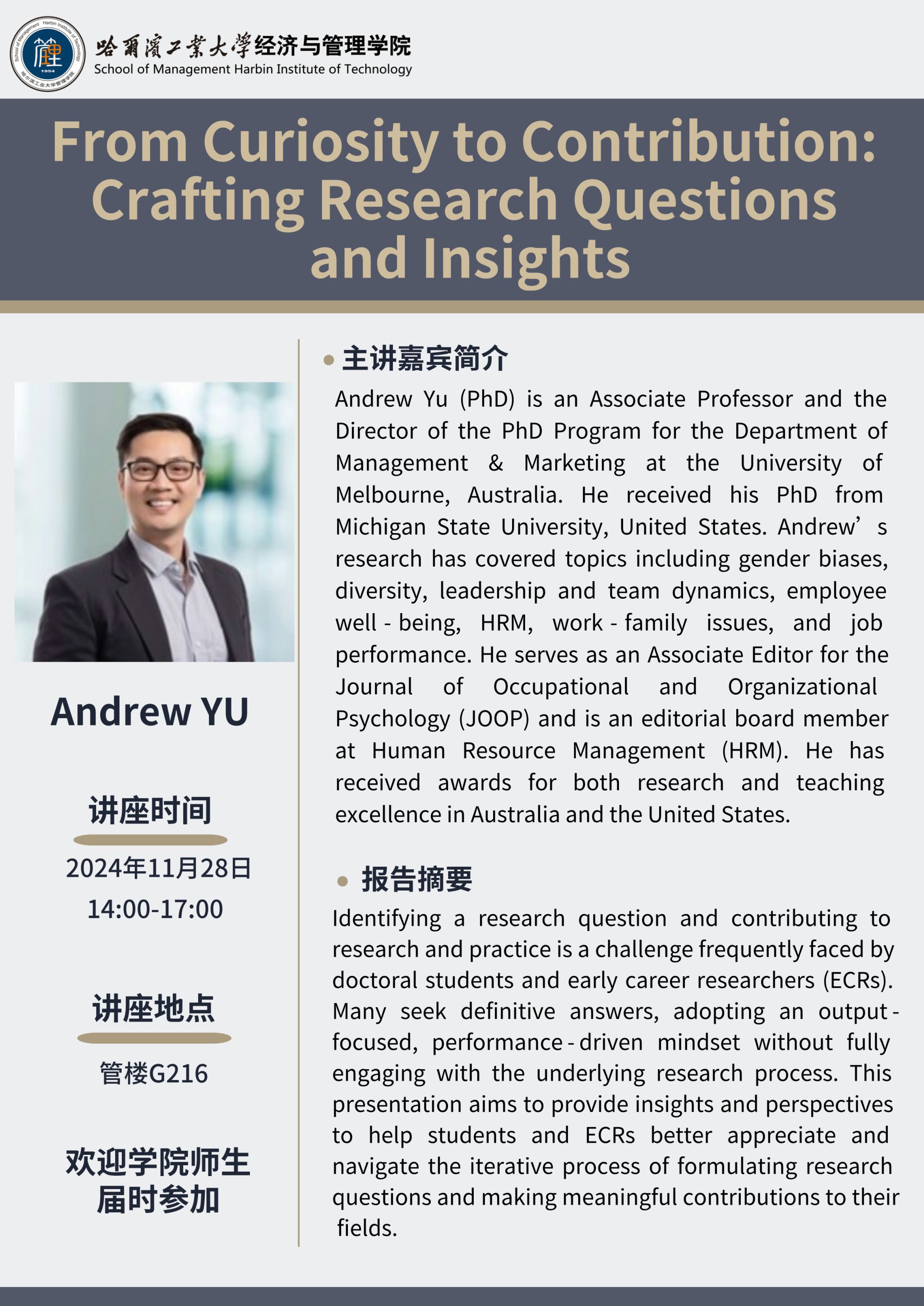 报告题目:From Curiosity to Contribution: Crafting Research Questions and Insights