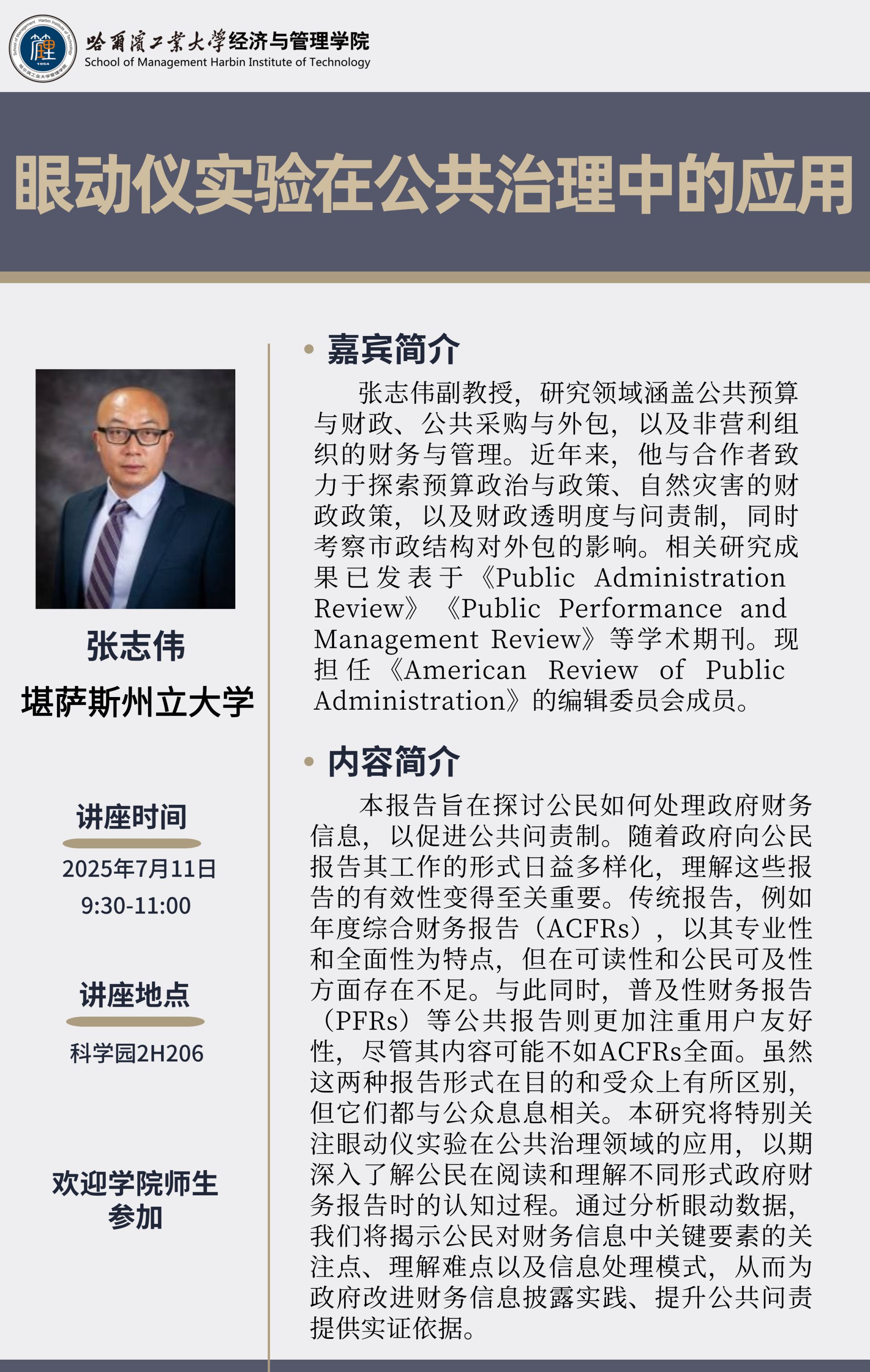 张志伟副教授,研究领域涵盖公共预算与财政、公共采购与外包,以及非营利组织的财务与管理。近年来,他与合作者致力于探索预算政治与政策、自然灾害的财政政策,以及财政透明度与问责制,同时考察市政结构对外包的影响。相关研究成果已发表于《Public AdministrationReview》《Public Performance andManagement Review》等学术期刊。现担任《American Review of PublicAdministration》的编辑委员会成员。