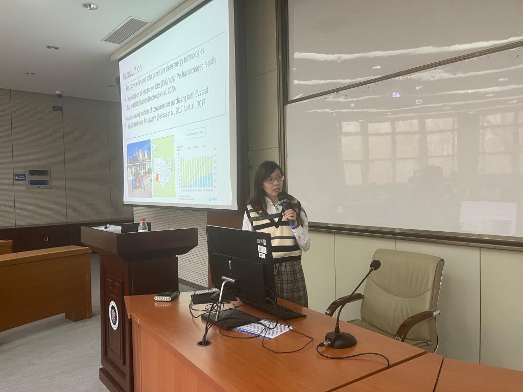 2023年4月20日,应公共管理系邀请,美国马里兰大学梁静博士在科学园2H216为学院师生作了题为《居民电动车和太阳能协同采用的用电行为改变》的讲座。讲座由公共管理系主任刘鲁宁教授主持,学院20余名师生参加。