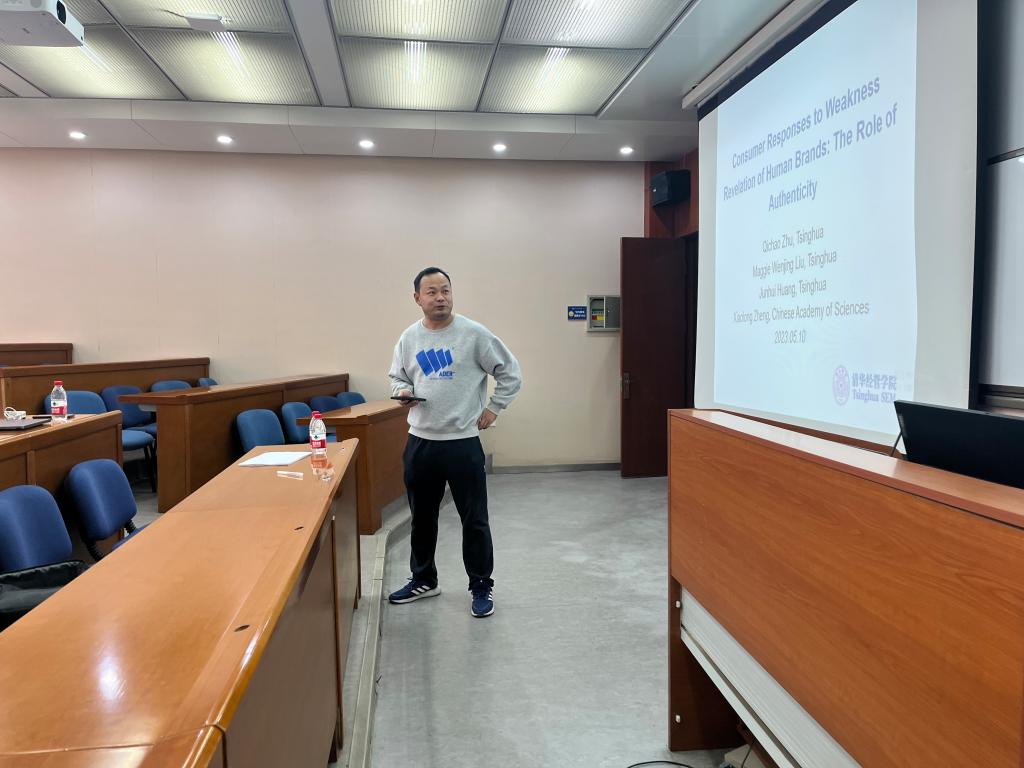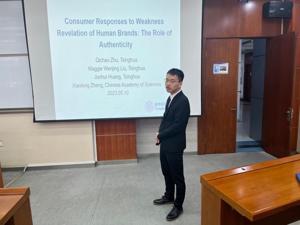 2023年5月11日,应市场营销系邀请,清华大学朱启超博士在科学园2H147为学院师生作了题为《Consumer Responses to Weakness Revelation of Human Brands: The Role of Authenticity》的讲座,讲座由市场营销系主任吴航副教授主持。