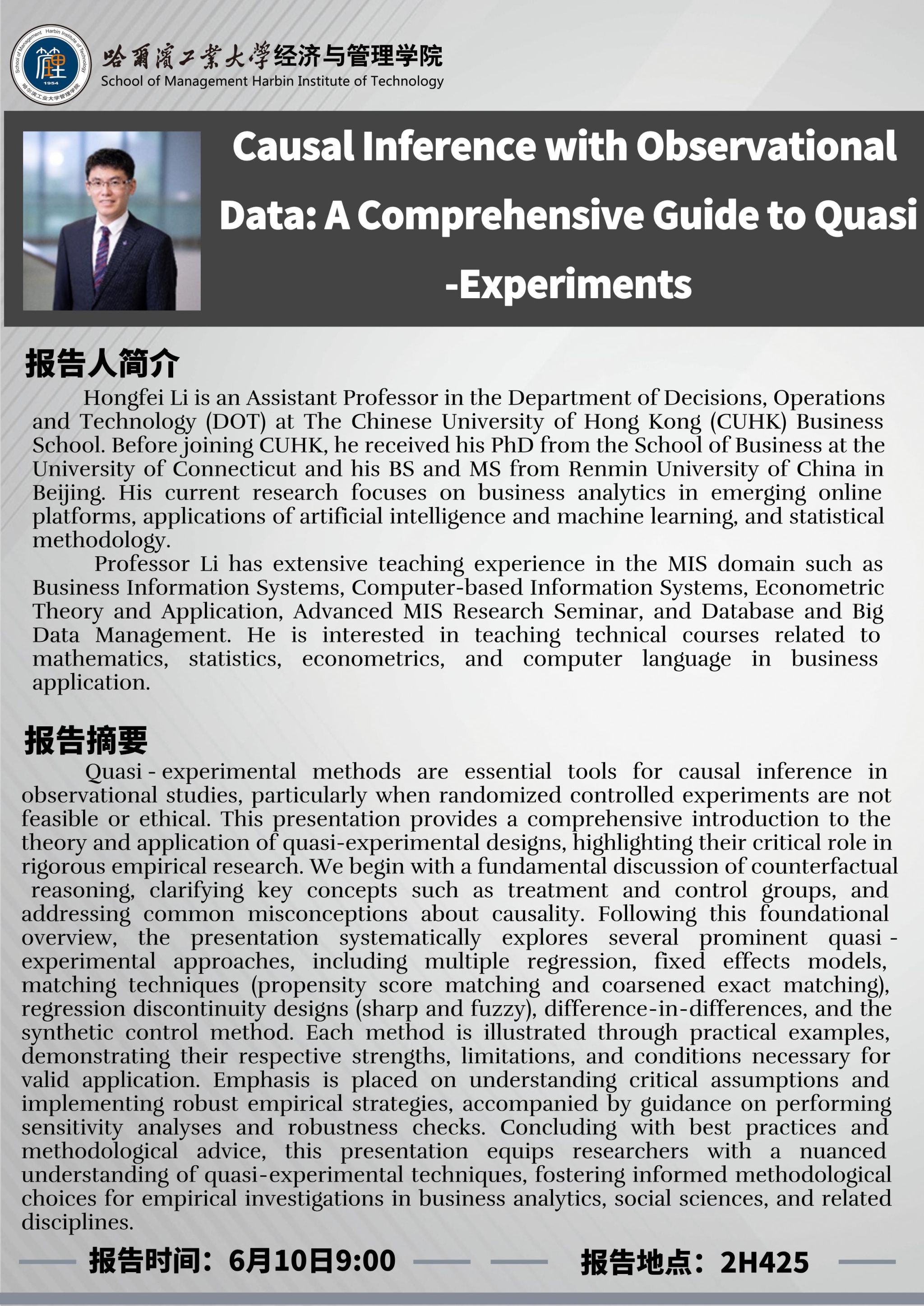 讲座主题:Causal Inference with Observational Data: A Comprehensive Guide to Quasi-Experiments(观察性数据的因果推断:准实验方法全面指南)
