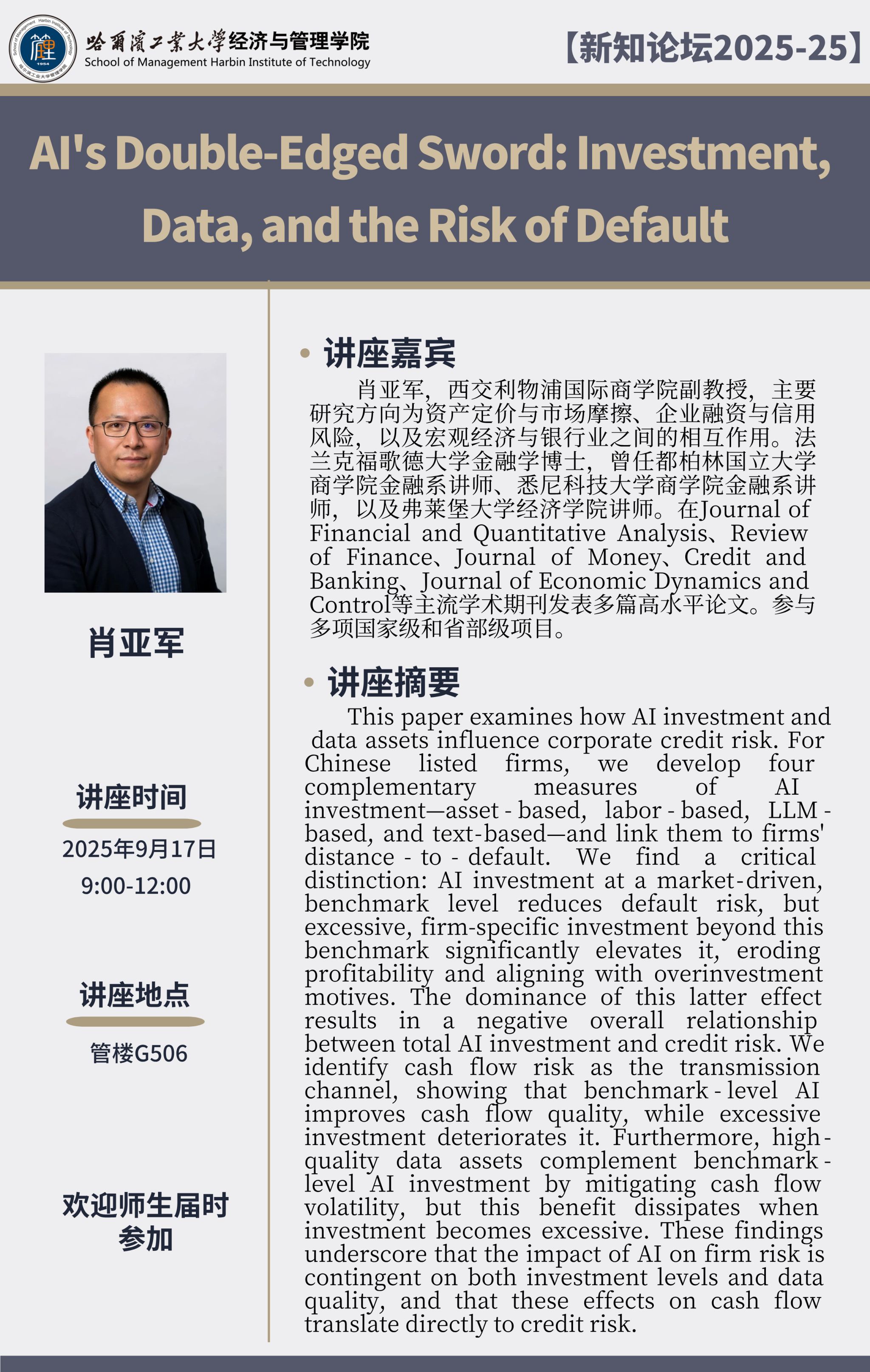 讲座主题:AI's Double-Edged Sword: Investment, Data, and the Risk of Default