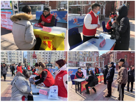 团委、区税务局团总支、区市场监督管理局团支部、区法院家事少年庭厅等多家单位在果戈里教堂广场举办了以青少年法制宣传,法律援助,心理咨询,创业咨询,口腔、血压、骨科义诊等暖心服务为内容的青年志愿服务集市,团区委领导及50余名青年志愿者参加了此次活动。